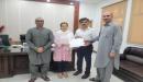 Prof Shahzad Akbar khan (Medical Director HMC) awarding a certificate of completion of cataract surgery course to Dr Silvia Kakish (from Germany) at Micro-surgical Training Centre in PICO/HMC.Dr Shahzad Faisal (Hospital Director HMC) and Professor Sanaullah Jan (Director PICO) are also present at...