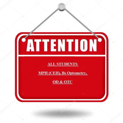 Attention: ALL Students MPH (CEH), Bs Optometry, OD & OTC